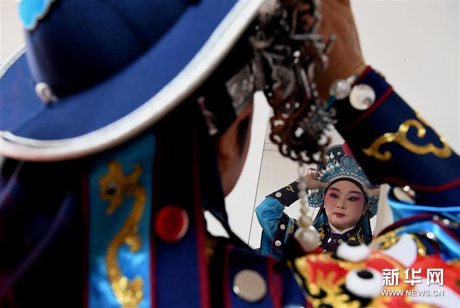 3月3日,李金玲在直播表演前整理头盔。新华社记者 李安 摄