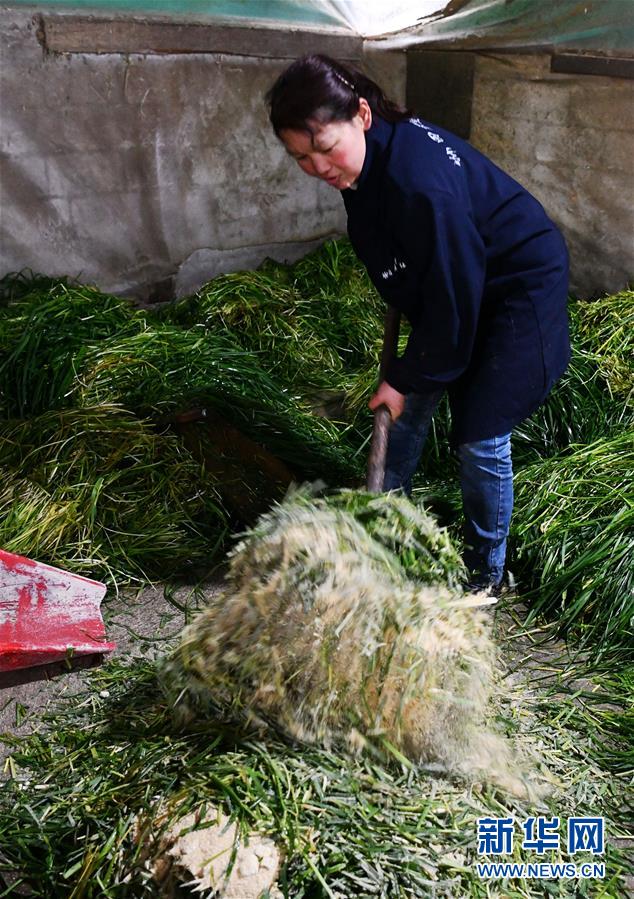 在贵州省铜仁市德江县平原镇坳田村,养殖户在坳田畜牧养殖农民专业合作社准备牛饲料(2月29日摄)。新华社记者 杨文斌 摄