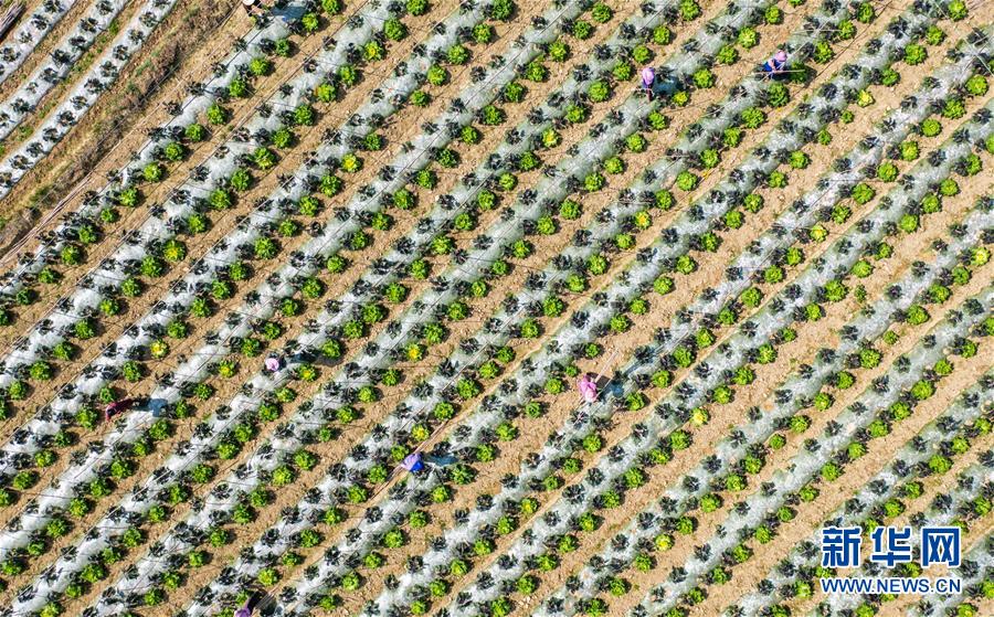 3月8日,贵州省罗甸县龙坪镇罗化村村民在田地里劳作(无人机照片)。