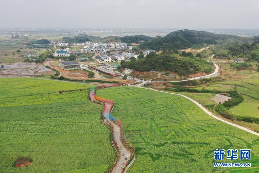 这是3月8日拍摄的宾阳县古辣镇境内的田园春色(无人机照片)。 近日,广西宾阳县古辣镇境内不少乡村菜花一片金黄,呈现一派春意融融的宜人景象。 新华社记者 陆波岸 摄