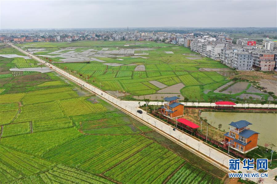 这是3月8日拍摄的宾阳县古辣镇境内的田园春色(无人机照片)。 近日,广西宾阳县古辣镇境内不少乡村菜花一片金黄,呈现一派春意融融的宜人景象。 新华社记者 陆波岸 摄