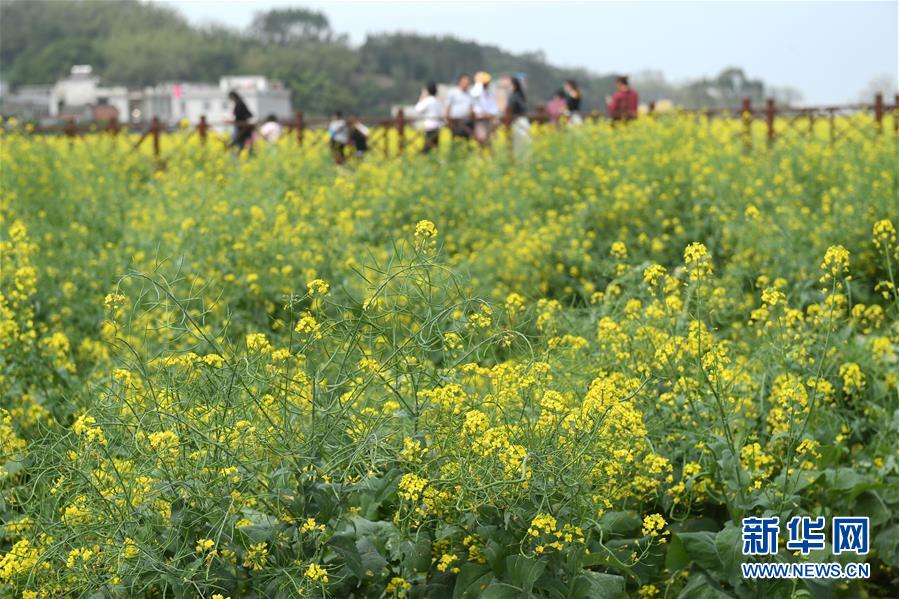 3月8日,游客在宾阳县古辣镇欣赏田园春色。 近日,广西宾阳县古辣镇境内不少乡村菜花一片金黄,呈现一派春意融融的宜人景象。 新华社记者 陆波岸 摄