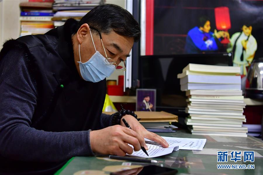 武凌云在太原市晋剧艺术研究院的办公室修改剧本(3月4日摄)。 新华社记者 曹阳 摄