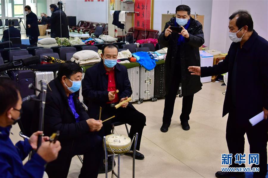 武凌云(右二)在太原市晋剧艺术研究院为戏迷直播晋剧排练(3月9日摄)。 新华社记者 曹阳 摄