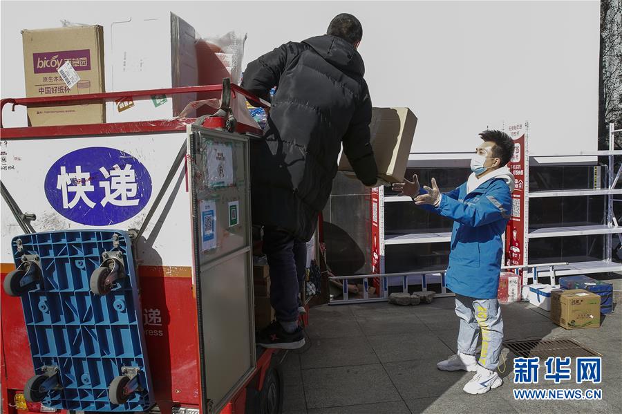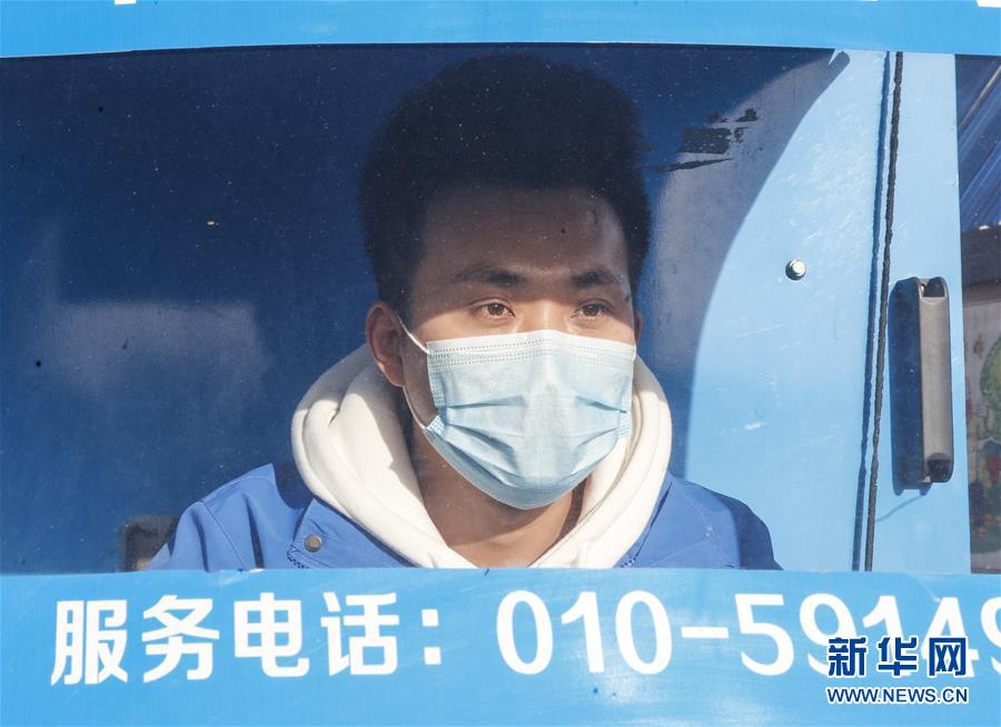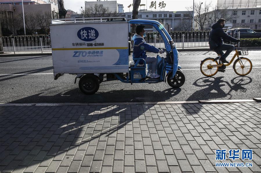 3月12日早晨,李杰在运送快递的路上。新华社记者张玉薇摄