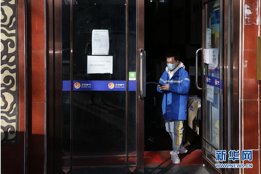 3月12日,李杰在送完一单快递后确认信息。新华社记者张玉薇摄