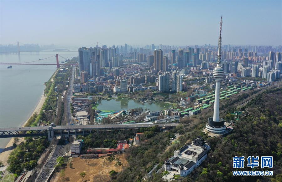 这是3月15日拍摄的武汉龟山电视塔(无人机照片)。 3月15日,江城武汉天气晴好,整个城市沐浴在和煦的春光中。 新华社记者 李贺 摄