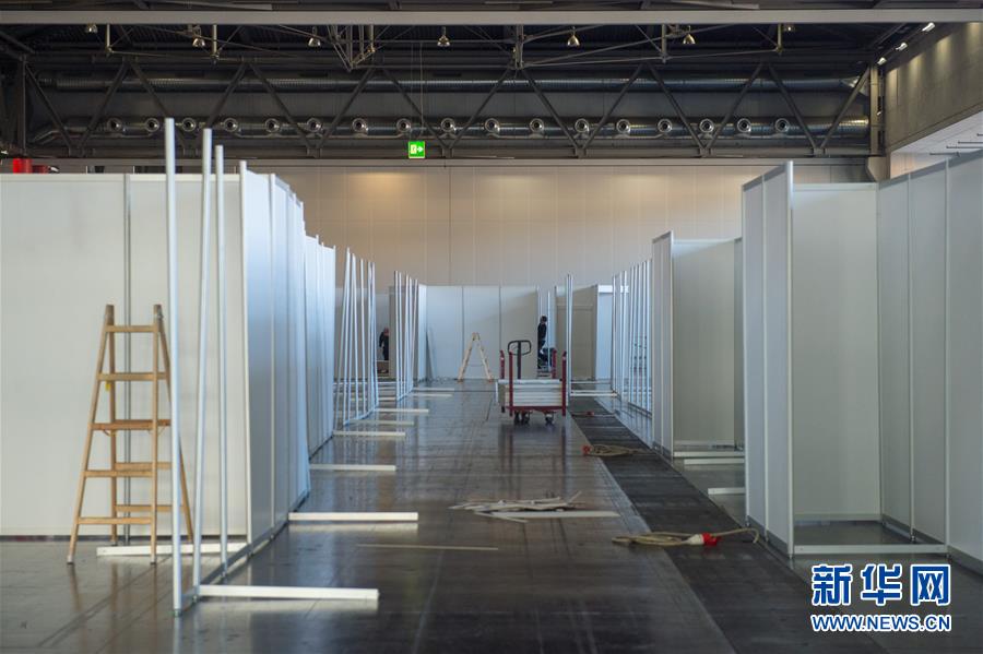 3月14日,在即将改造成为方舱医院的维也纳展览馆内,工作人员正在加紧施工。近日,由于奥地利新型冠状病毒感染人数不断增加,奥地利首都维也纳正在将该市的一座大型展览馆——维也纳展览馆改造成为一座临时性的方舱医院。据当地媒体介绍,该方舱医院将在下周提供880张床位,用于收治轻度病症患者。新华社记者郭晨摄