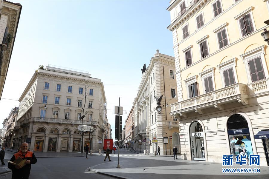 3月10日,在意大利首都罗马,孔多蒂街上人流量明显减少。新华社记者程婷婷摄