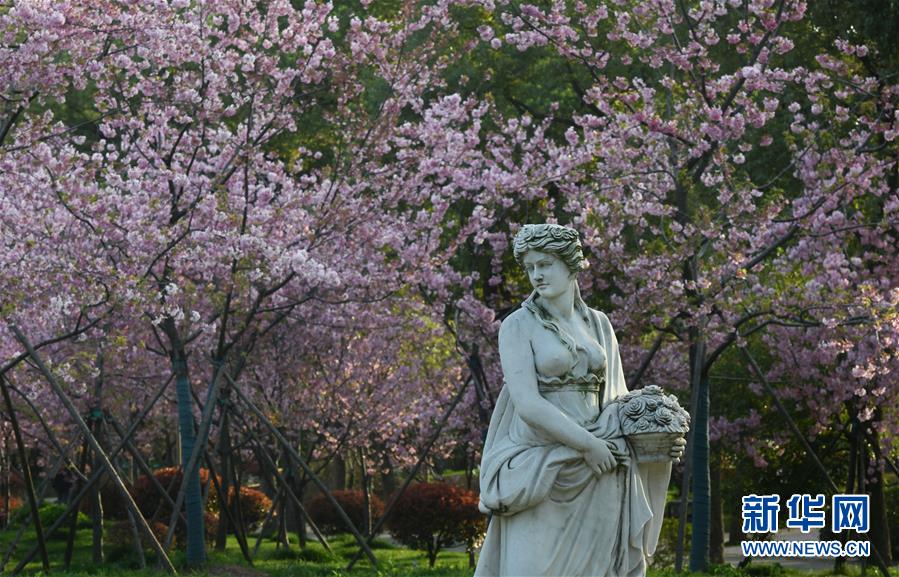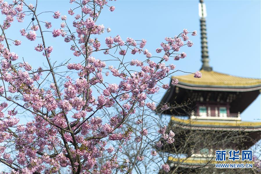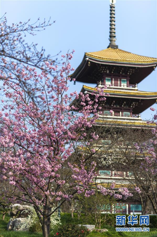 这是3月14日拍摄的武汉东湖磨山樱园景色。近日气温渐升,武汉东湖磨山樱园里的樱花渐次盛开,带来春天的气息。新华社记者熊琦摄
