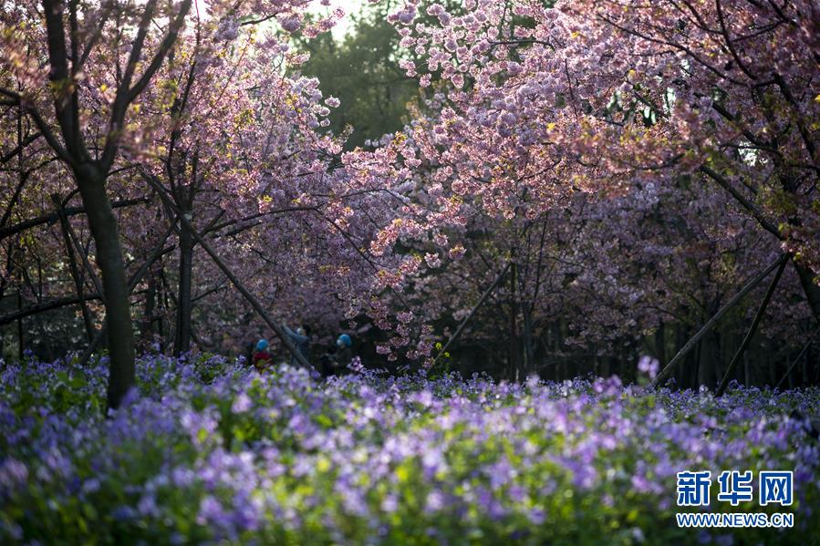 这是3月14日拍摄的武汉东湖磨山樱园景色。近日气温渐升,武汉东湖磨山樱园里的樱花渐次盛开,带来春天的气息。新华社记者程敏摄