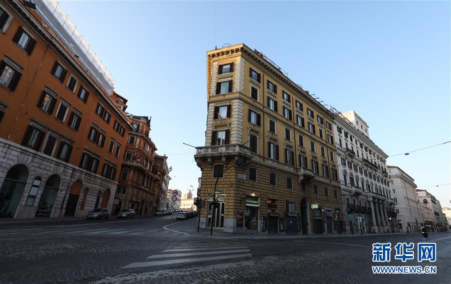 这是3月14日在意大利首都罗马拍摄的空荡荡的街道。新华社记者刘咏秋摄