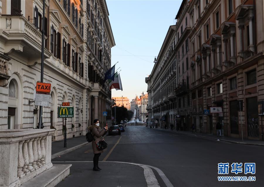 3月16日,在意大利首都罗马,威尼斯广场前行人寥寥。新华社记者程婷婷摄