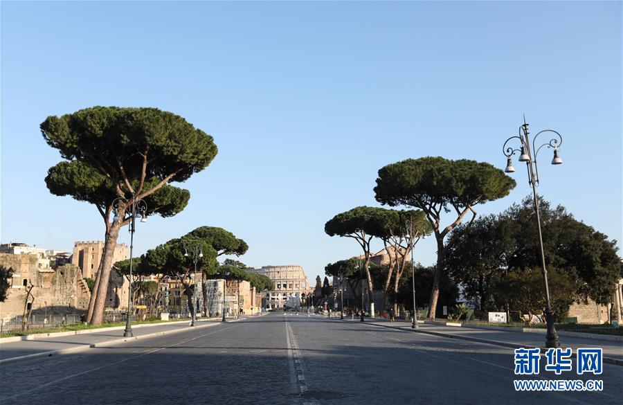 3月16日,在意大利首都罗马,帝国广场大道上行人寥寥。新华社记者程婷婷摄