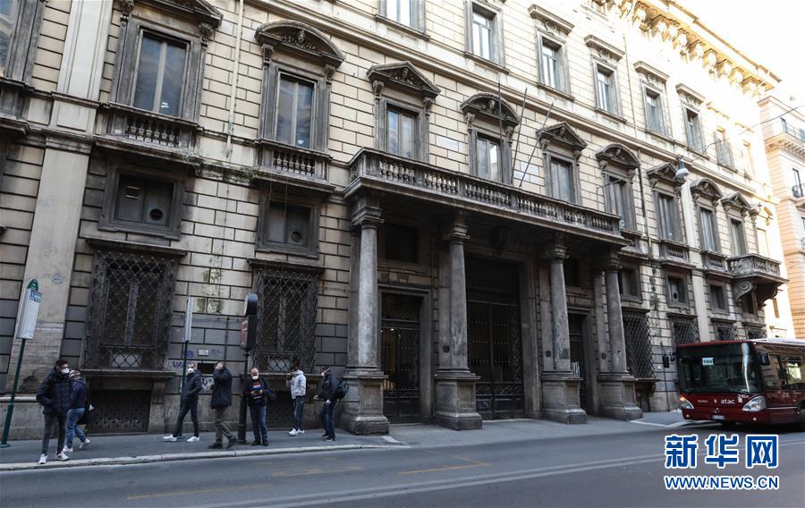 3月16日,在意大利首都罗马,人们戴着口罩等公交车。新华社记者程婷婷摄