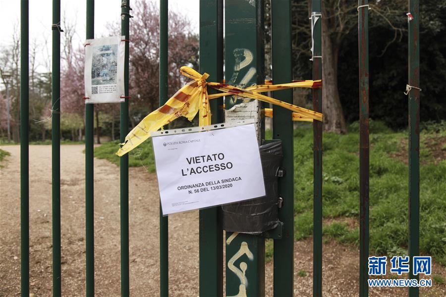 3月14日,在意大利首都罗马,一所公园因新冠病毒疫情关闭。新华社记者刘咏秋摄