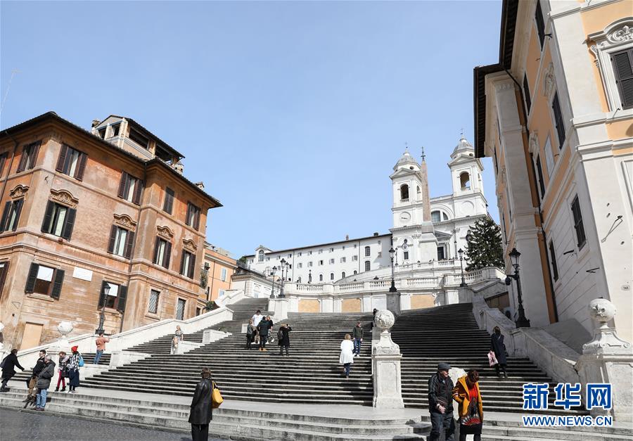 3月10日,在意大利首都罗马,西班牙台阶上游客明显减少。新华社记者程婷婷摄