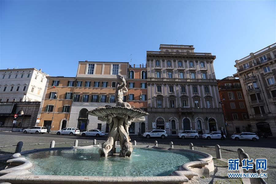 3月16日,在意大利首都罗马,出租车在巴贝里尼广场一处出租车停靠点排队等候。新华社记者程婷婷摄