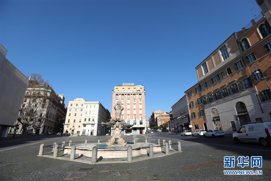 3月16日,在意大利首都罗马,巴贝里尼广场空旷无游人。新华社记者程婷婷摄