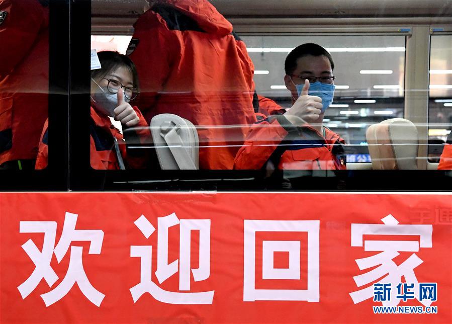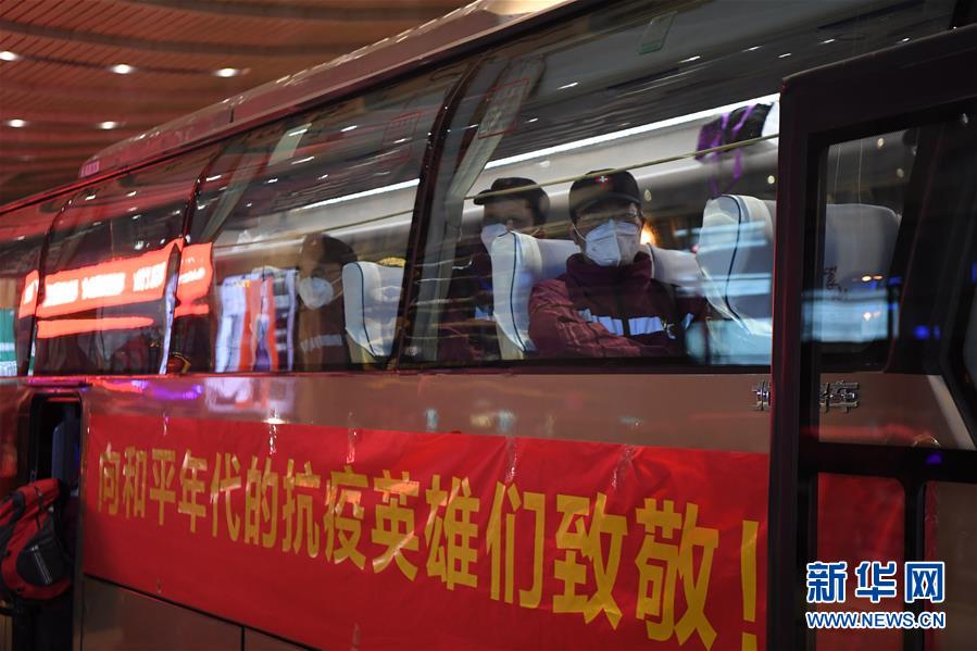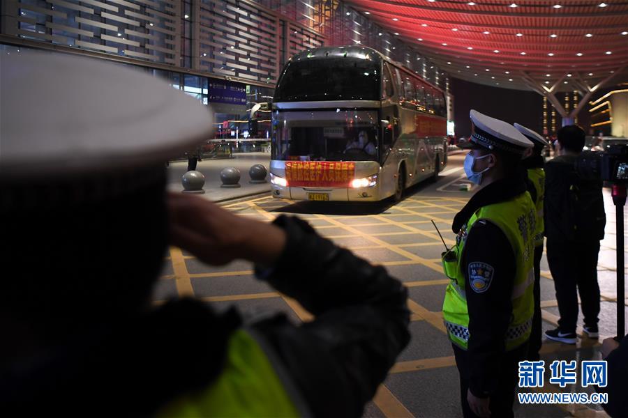 3月17日,抵达湖南长沙南站的医疗队队员乘坐大巴离开。新华社记者薛宇舸摄