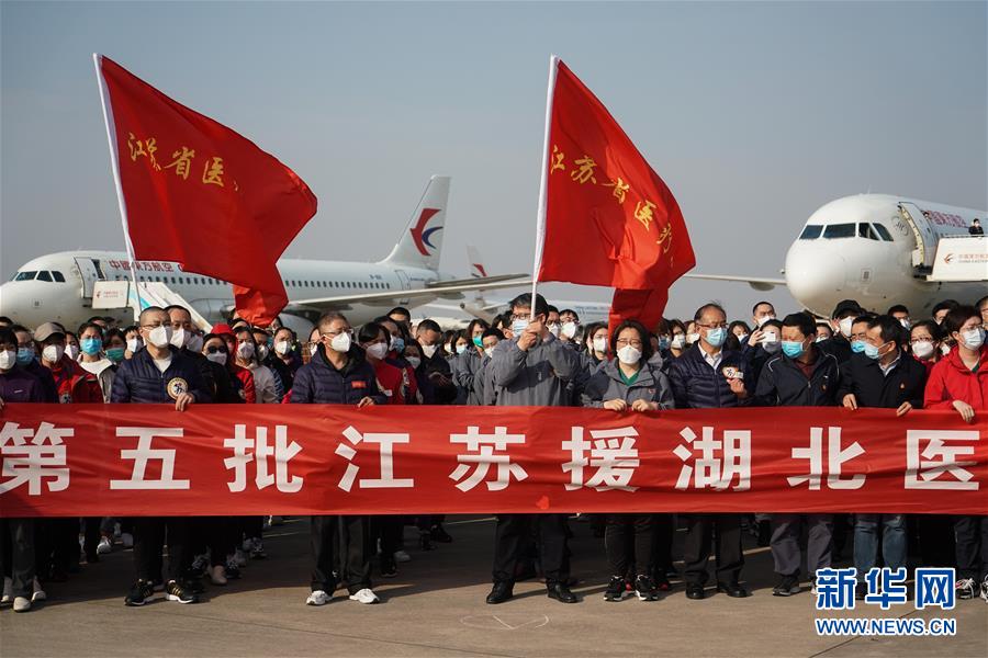 3月17日,医疗队队员抵达江苏南京禄口国际机场。新华社记者季春鹏摄