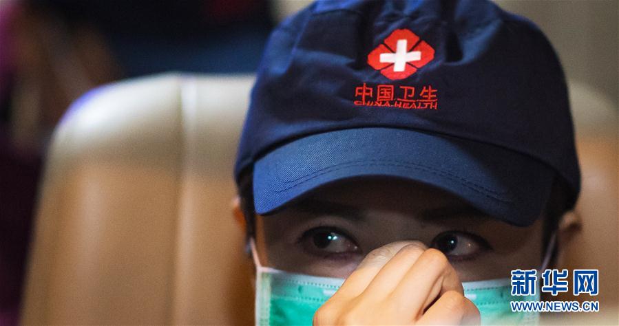 3月17日,陕西国家紧急医学救援队队员高丹萍在返程途中落泪。新华社记者肖艺九摄
