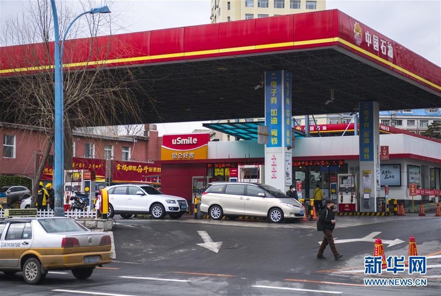 3月17日,车辆在吉林省长春市一处加油站加油。 新华社记者 许畅 摄