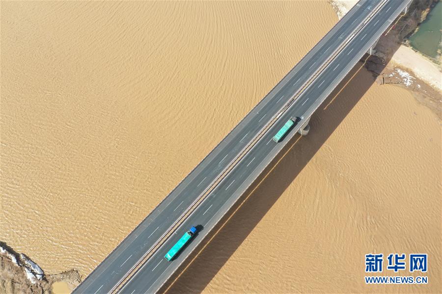 这是3月18日拍摄的黄河内蒙古托克托县段(无人机照片)。 当日,黄河内蒙古封冻河段全线开通,凌汛洪水安全进入万家寨水库,这标志着黄河2019-2020年度凌汛期结束。据了解,本年度黄河凌汛期历时共计121天,全河封冻总长度699.5千米,全河未发生凌汛灾害。 新华社记者 刘磊 摄