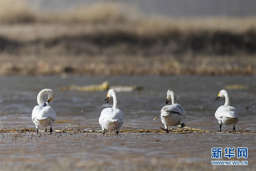3月18日,候鸟在准格尔旗大路镇的黄河浅滩上栖息。 新华社记者 刘磊 摄