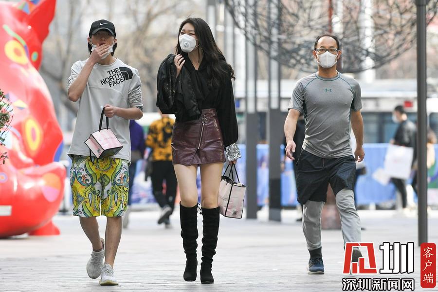 2020年3月18日,北京,据北京市气象局发布,18日北京最高气温23摄氏度。在朝阳区三里屯,不少潮人已迫不及待换上了短裙短裤出街,享受难得的春光。