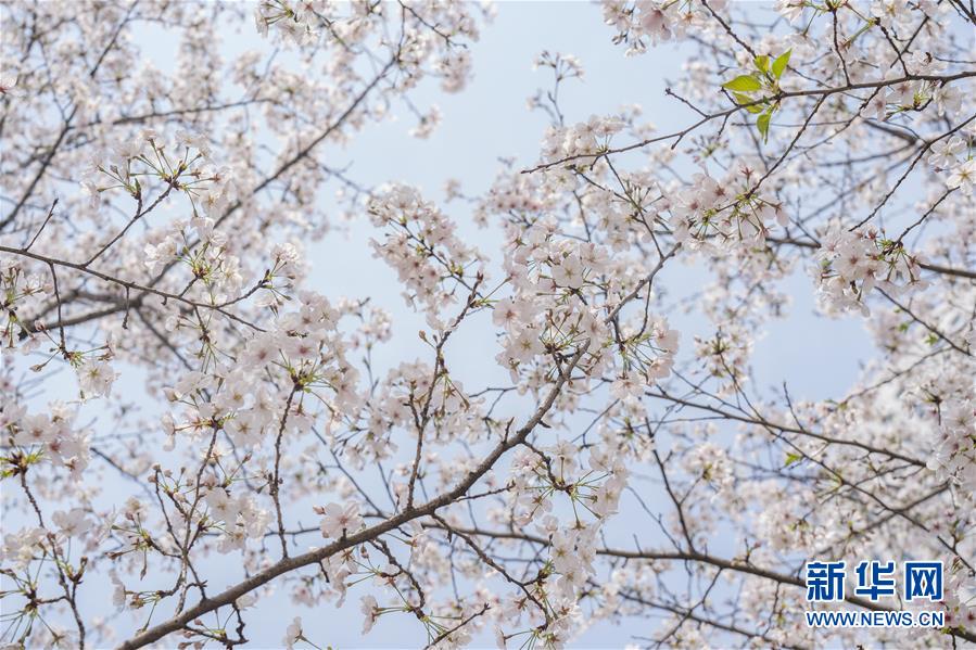 在武汉市武昌区被网友称为“武汉最美停车场”的湖北日报停车场,樱花开放(3月19日摄)。 新华社记者 才扬 摄