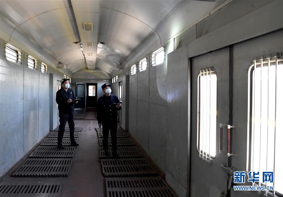 3月19日,郑州车辆段客车检车员刘凯(左)和王东亮在检查客车行李车的车厢内部。新华社记者 李安 摄