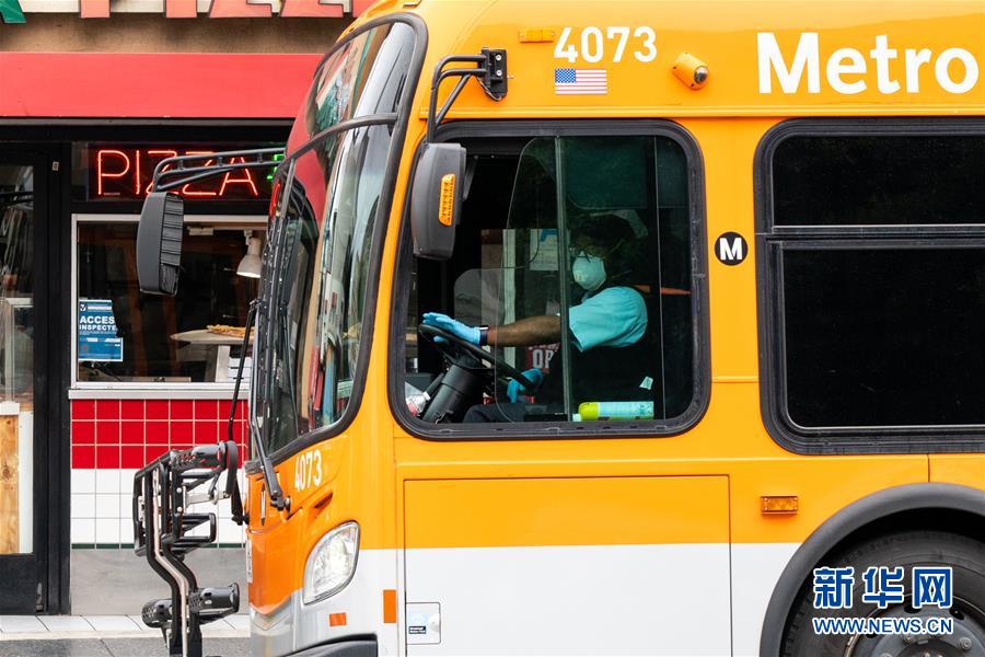 3月20日,在美国加利福尼亚州洛杉矶,公交车驾驶员戴着口罩。 新华社发(钱卫忠摄)