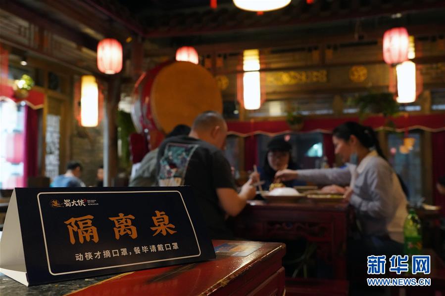 3月21日,在四川省成都市锦江区商业场街的一家火锅店内,顾客在就餐。近日,在做好新冠肺炎疫情防控措施的基础上,四川省成都市的火锅店逐渐恢复营业。新华社记者王曦摄