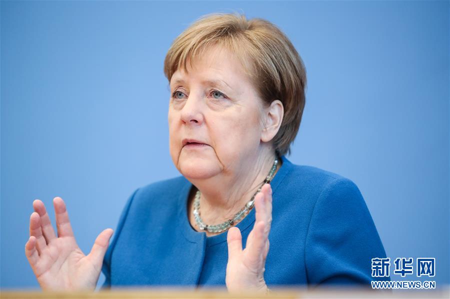 这是3月11日德国总理默克尔在德国首都柏林出席新闻发布会的资料照片。德国政府发言人赛贝特22日说,由于日前接触过的一名医生被确诊感染新冠肺炎,总理默克尔已开始居家隔离。新华社记者单宇琦摄