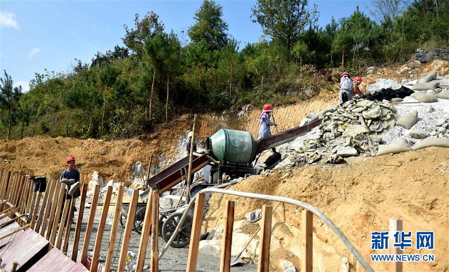 这是广西大化瑶族自治县北景乡那色村群众在修建抗旱应急引水工程(2016年11月22日摄)。广西有近一半贫困人口生活在石漠化地区,涉及数十个县区。这里也是广西饮水保障程度最低的地区,解决贫困人口饮水问题是广西脱贫攻坚战“硬仗中的硬仗”。“十三五”以来,广西加快实施农村饮水安全巩固提升工程。因地制宜,采取新建、扩建及管网延伸等多种措施,补齐贫困地区水利薄弱短板,进一步提升石漠化地区群众饮水安全保障水平,助推脱贫攻坚。新华社记者张爱林摄