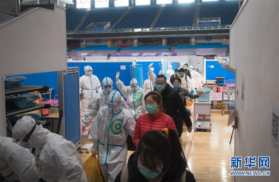 3月10日,武汉武昌方舱医院正式休舱。这是医护人员护送痊愈患者出舱。新华社记者肖艺九摄