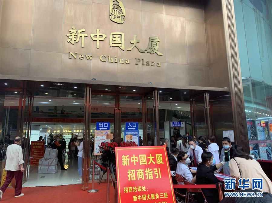 在广州市新中国大厦门口,顾客排队进行安全检查(3月21日摄)。新华社记者周颖摄