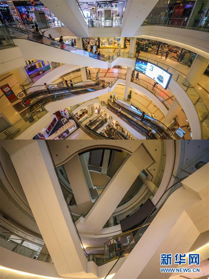 这是3月21日拍摄的泰国曼谷暹罗百丽宫商场(上图)和3月22日拍摄的停止营业的商场的对比图。