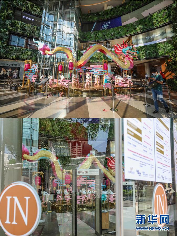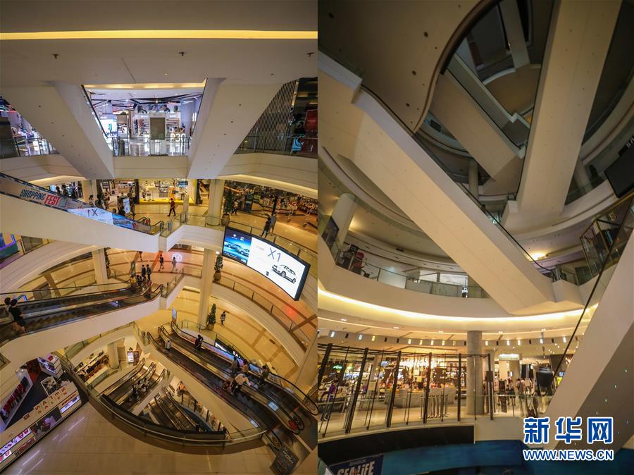这是3月21日拍摄的泰国曼谷暹罗百丽宫商场(上图)和3月22日拍摄的停止营业的商场的对比图。新华社记者张可任摄