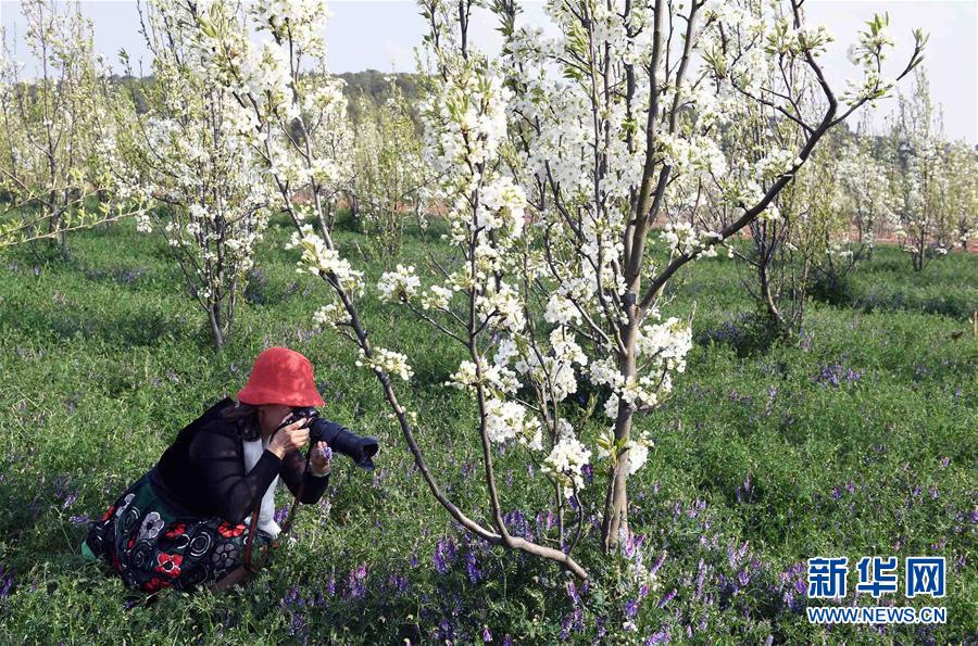 3月22日,游客在云南省曲靖市沾益区炎方乡炎方村的果园里拍摄。春季里,云南省曲靖市沾益区乡村果园里的桃花梨花竞相绽放,景色秀美,吸引游人前来观光。新华社记者杨宗友摄
