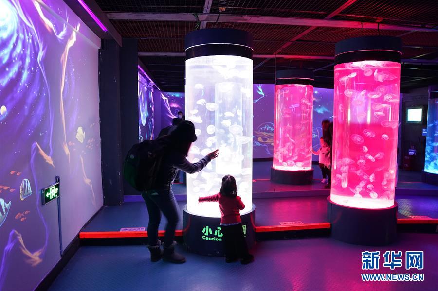 3月23日,游客在哈尔滨极地馆观赏水母。当日,哈尔滨极地馆恢复营业。目前,极地馆日接待人数不超过400人,园区采取分时段、间隔性办法安排游客有序入园。游客实名预订门票,入园要配合测温、佩戴口罩、扫描“龙江健康码”,刷身份证入馆。新华社记者王建威摄