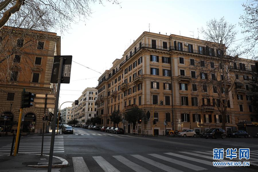 这是3月14日在意大利首都罗马拍摄的空荡荡的街道。新华社记者刘咏秋摄