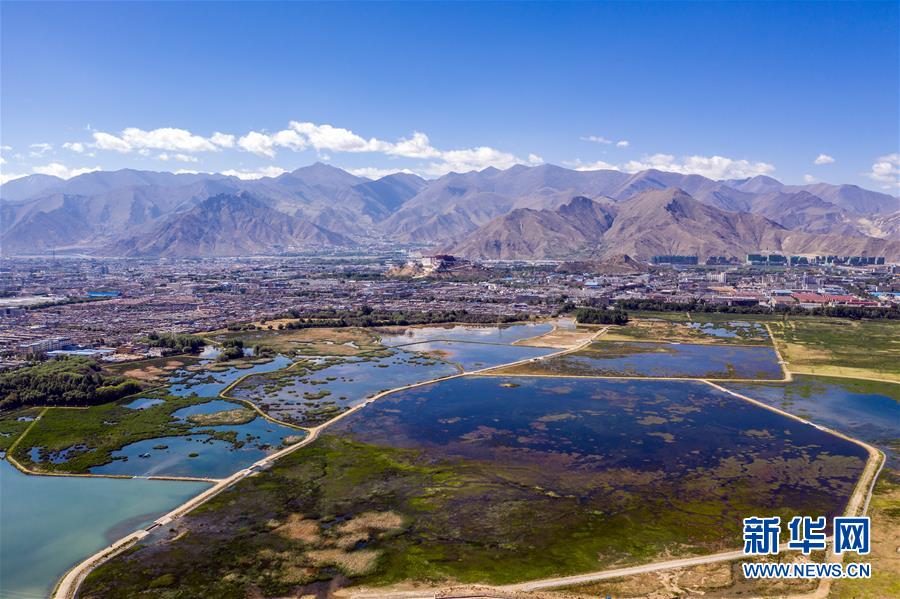 鸟瞰拉萨拉鲁湿地(6月5日无人机拍摄)。新华社记者普布扎西摄