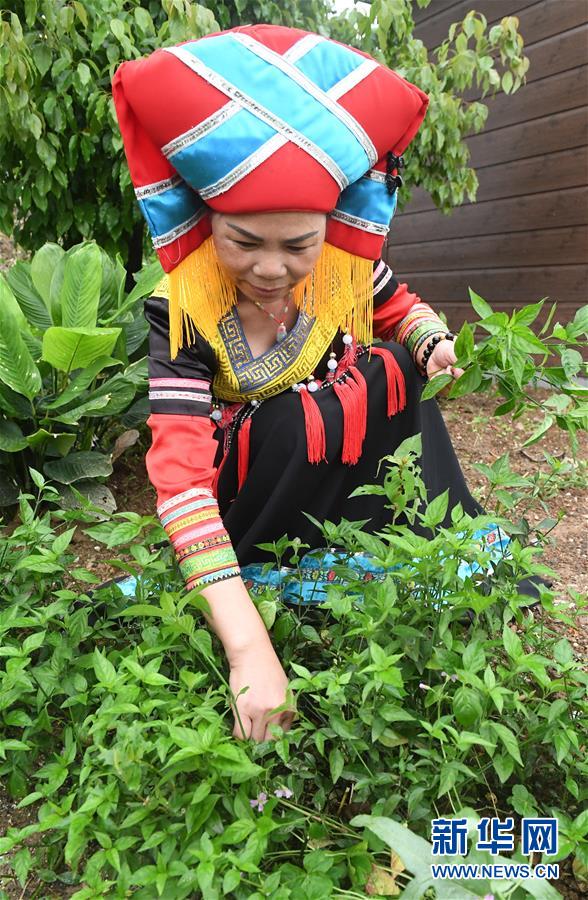 3月25日,在广西上林县巷贤镇,一名壮族女子在采摘给糯米染色所需要的植物。新华社记者陆波岸摄
