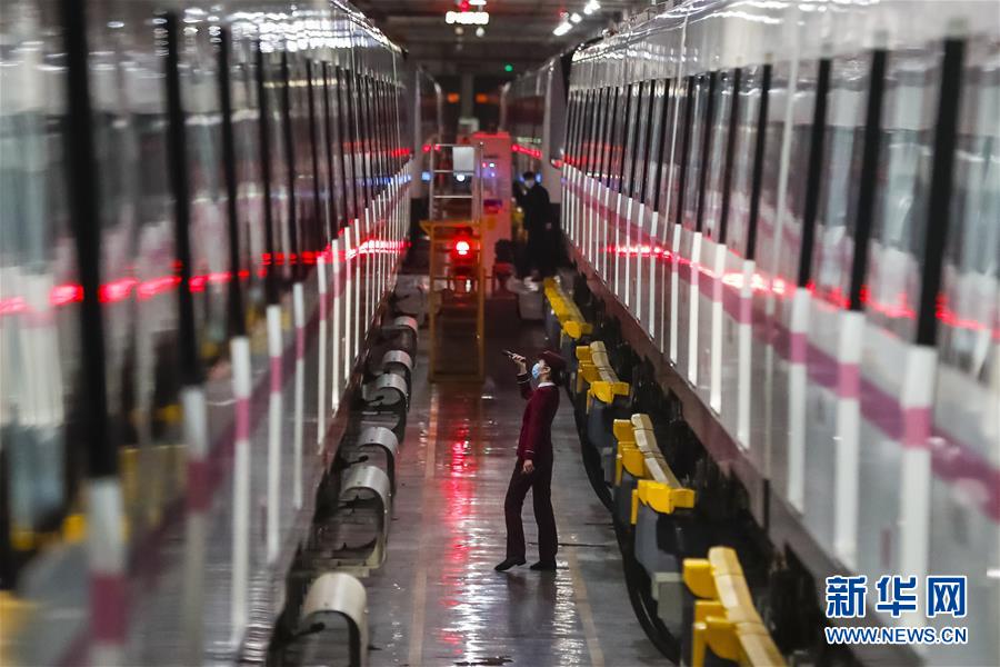 3月28日,武汉地铁运营有限公司司机吴亚在常青车辆段检查车辆情况。新华社记者沈伯韩摄