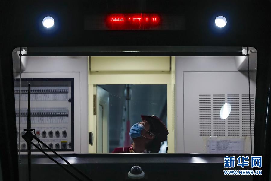 3月28日,武汉地铁运营有限公司司机吴亚在常青车辆段检查车辆情况。新华社记者沈伯韩摄