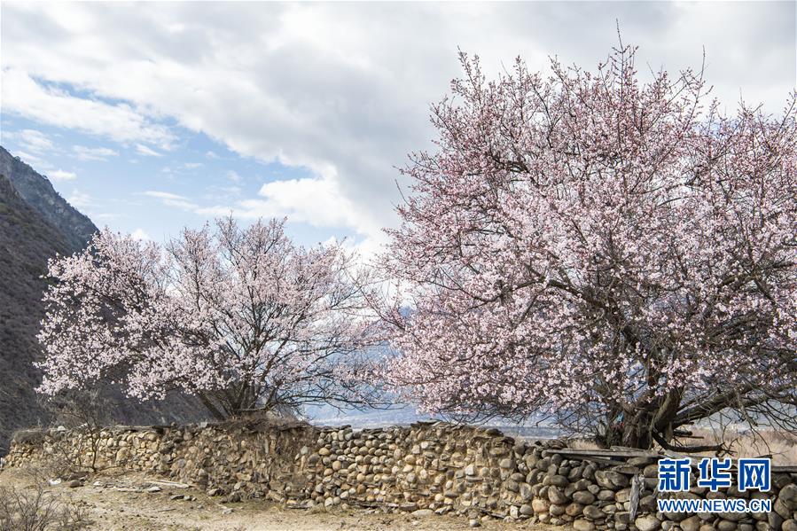 这是3月26日拍摄的西藏林芝市波密县境内桃花盛开的田园风光。新华社记者 晋美多吉 摄