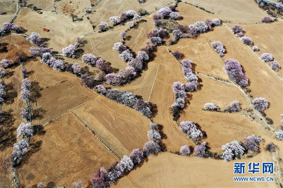 3月26日,西藏林芝境内盛开的桃花(无人机照片)。新华社记者 孙非 摄