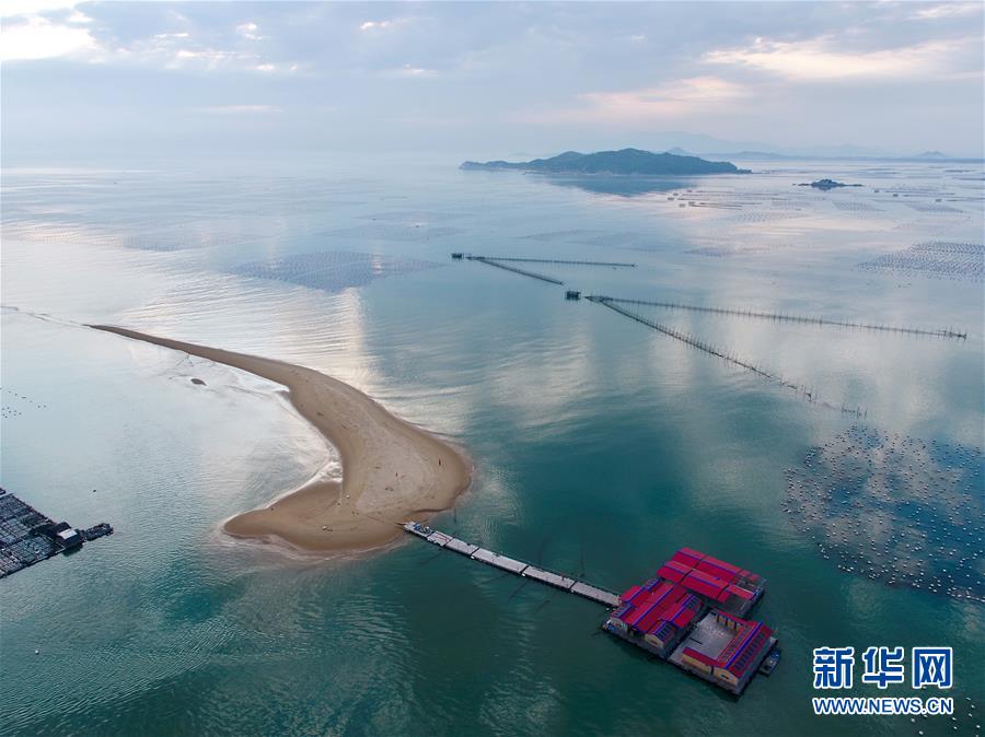 这是3月26日拍摄的福建漳州东山县岐下村附近海域的鱼骨沙洲(无人机照片)。新华社记者姜克红摄